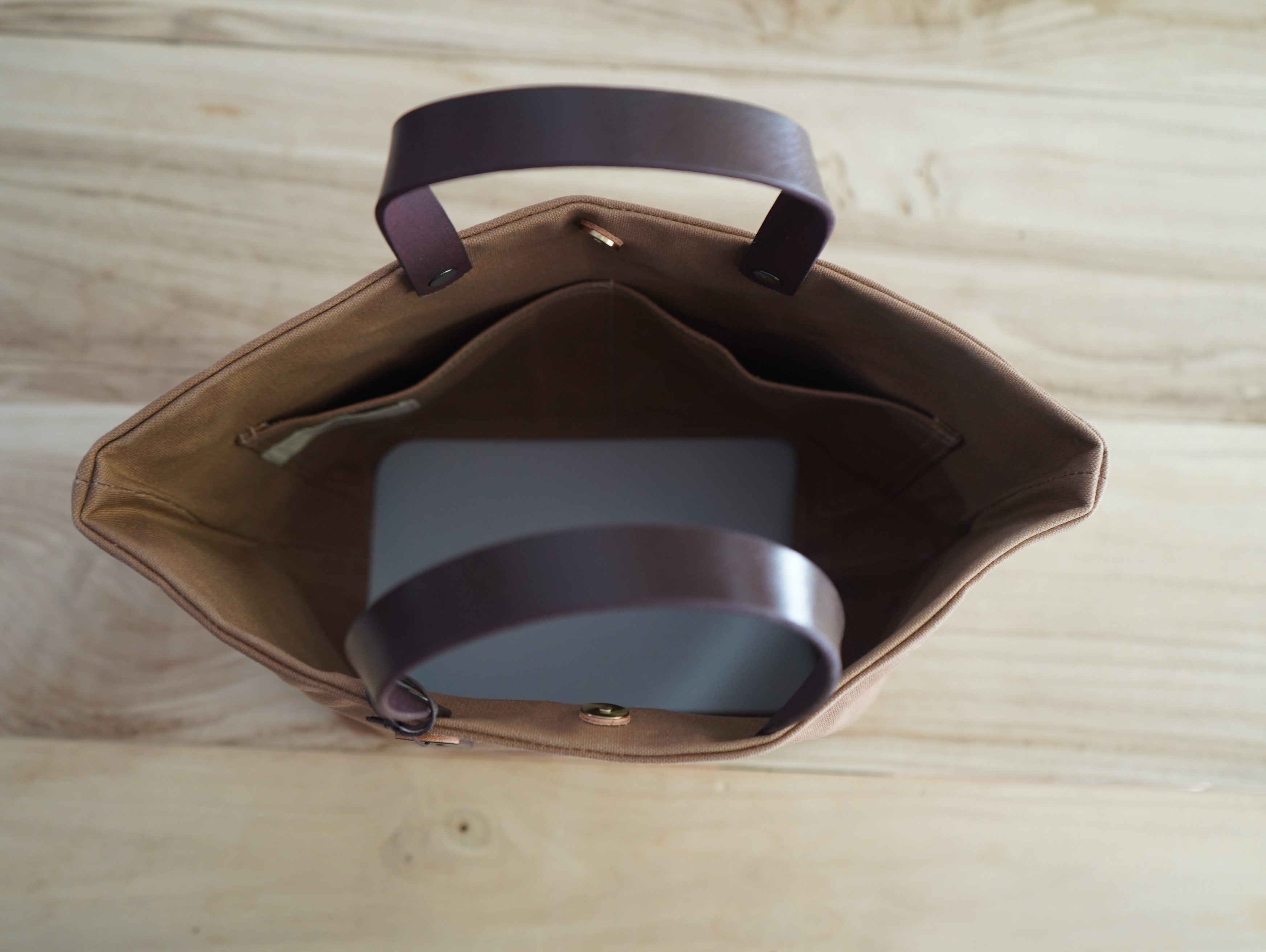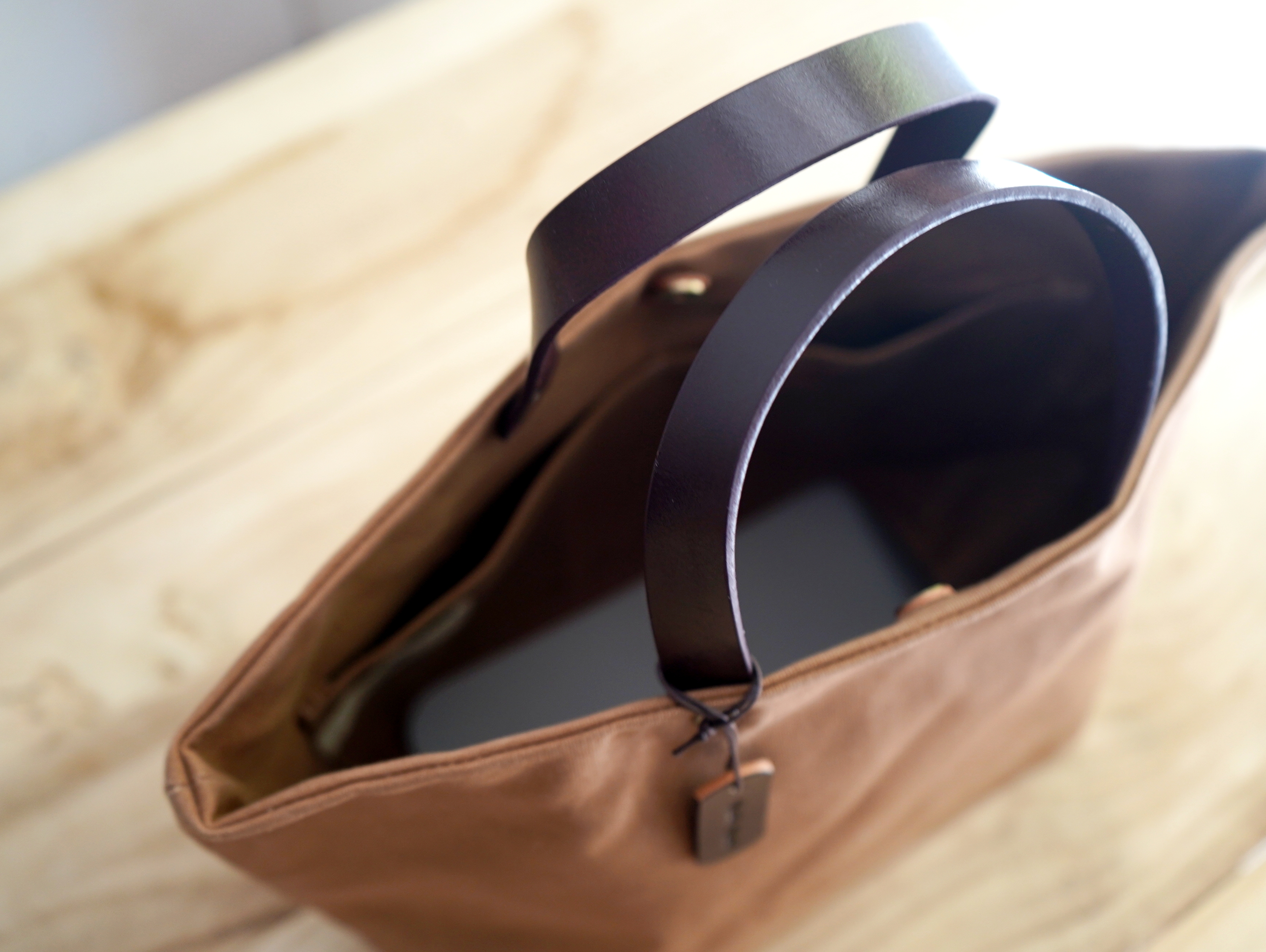 材質:日本 9 號石蠟帆布/義大利植鞣皮革/高級五金