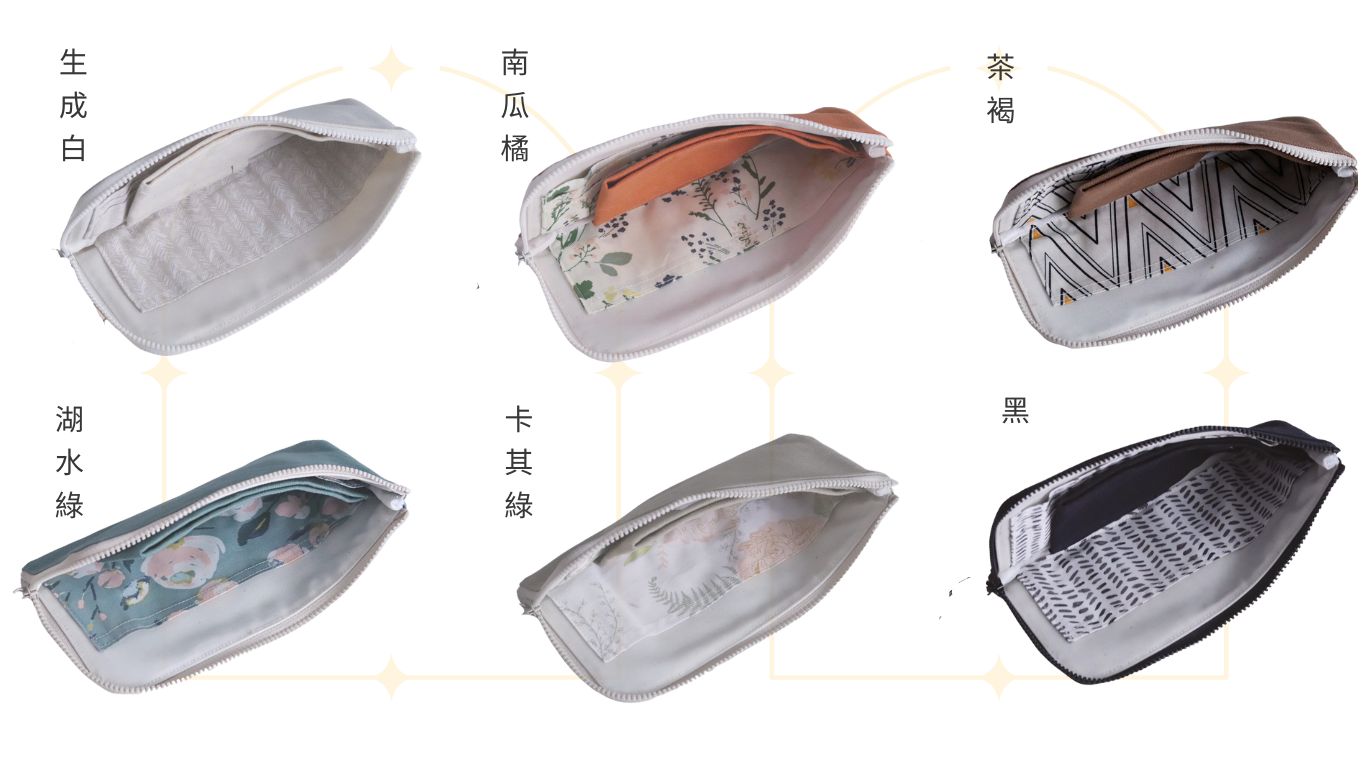 生成白 南瓜橘 茶褐 湖水藍綠 卡其綠